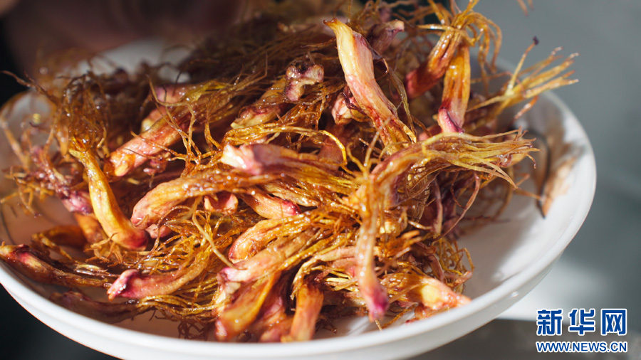 油炸攀枝花花蕊(2月28日攝)。新華網發(余林強攝)