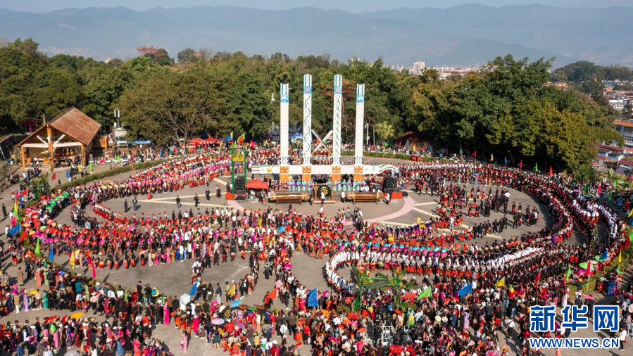 航拍鏡頭下目瑙縱歌現場(3月2日攝)。新華網發(尹以祜 攝)