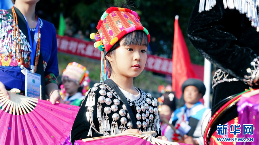一名女孩在目瑙縱歌現場(3月2日攝)。新華網發( 顏秋 攝)
