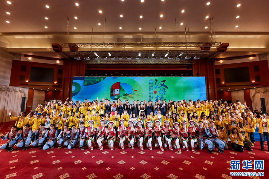 圖為第十六屆“漢語橋”世界中學生中文比賽啟動儀式合影。新華網發(供圖)