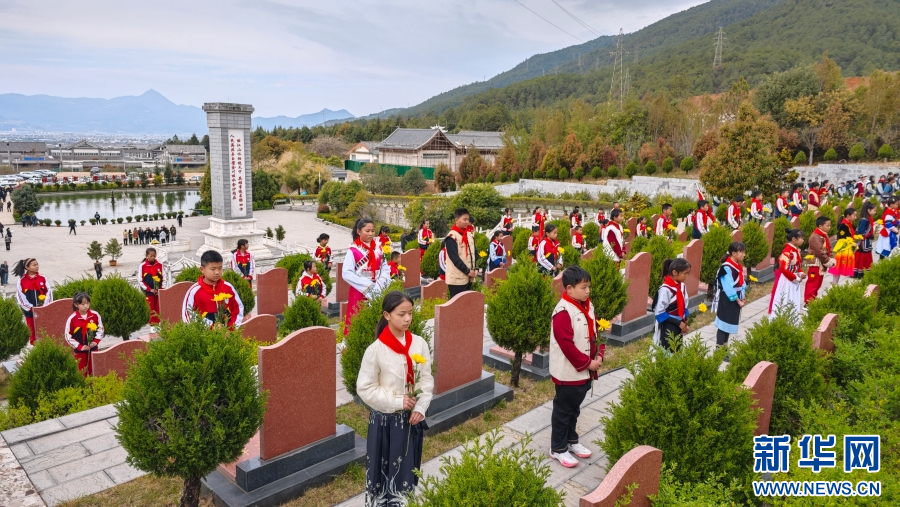 麗江市2024年“清明祭英烈”示范主題團(隊)日活動現場(4月2日攝)。新華網發(共青團麗江市委 供圖)
