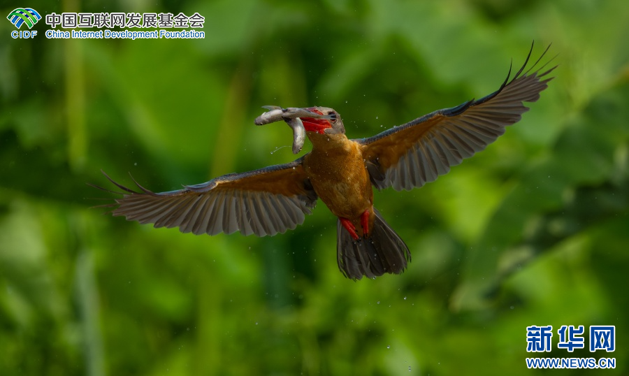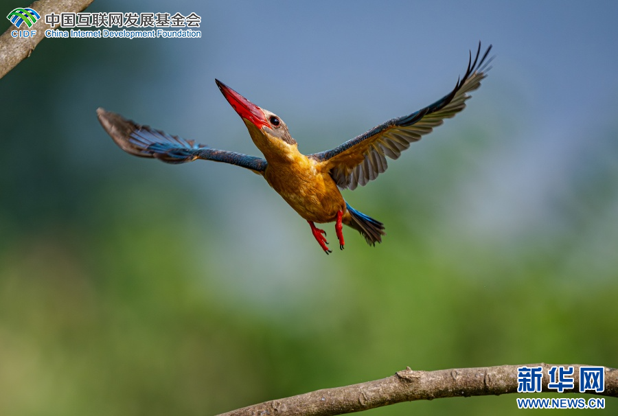 飛翔的鸛嘴翡翠(3月31日攝)。新華網發(高峰 攝)