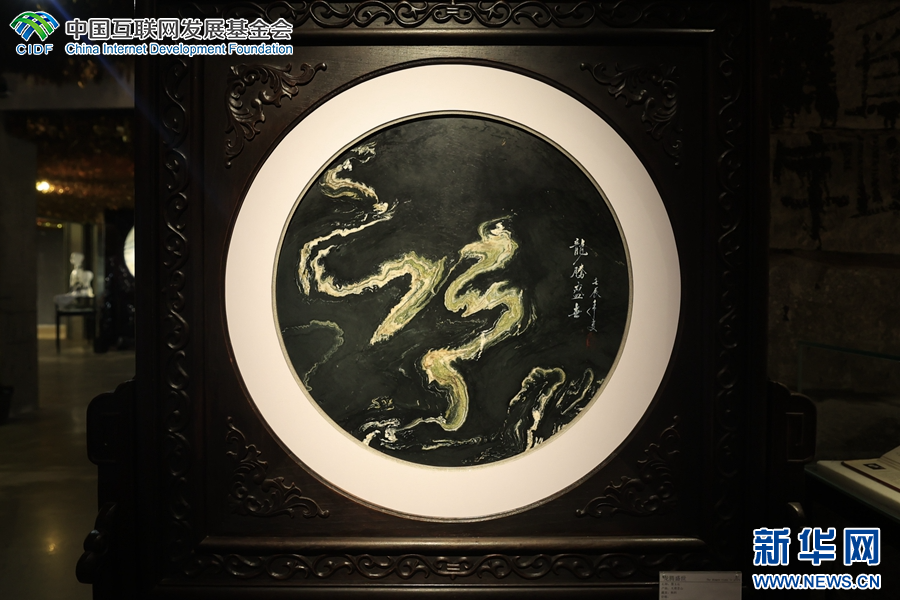大理石方志館展出的大理石畫(攝于4月3日)。(新華網 趙普凡 攝)