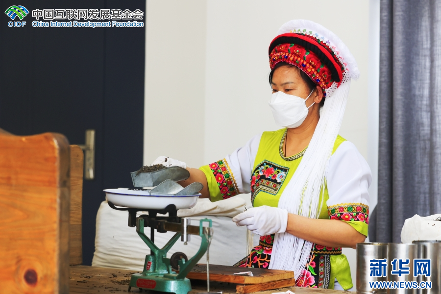 下關沱茶館傳統制茶工藝展示區,工作人員正在稱茶(攝于4月1日)。新華網 趙普凡 攝