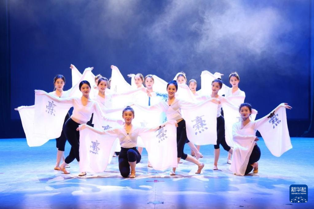 云南曲靖師范學院音樂舞蹈學院的學生在表演爨舞(2月26日攝)。新華社發(許喬貴 攝)