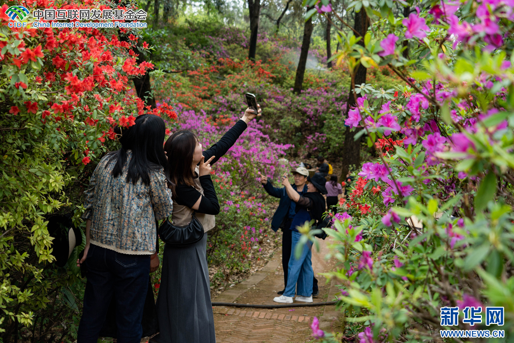 近日,云南省昆明市黑龍潭公園內的杜鵑花競相綻放,美不勝收,吸引了不少游客前來踏青賞花。