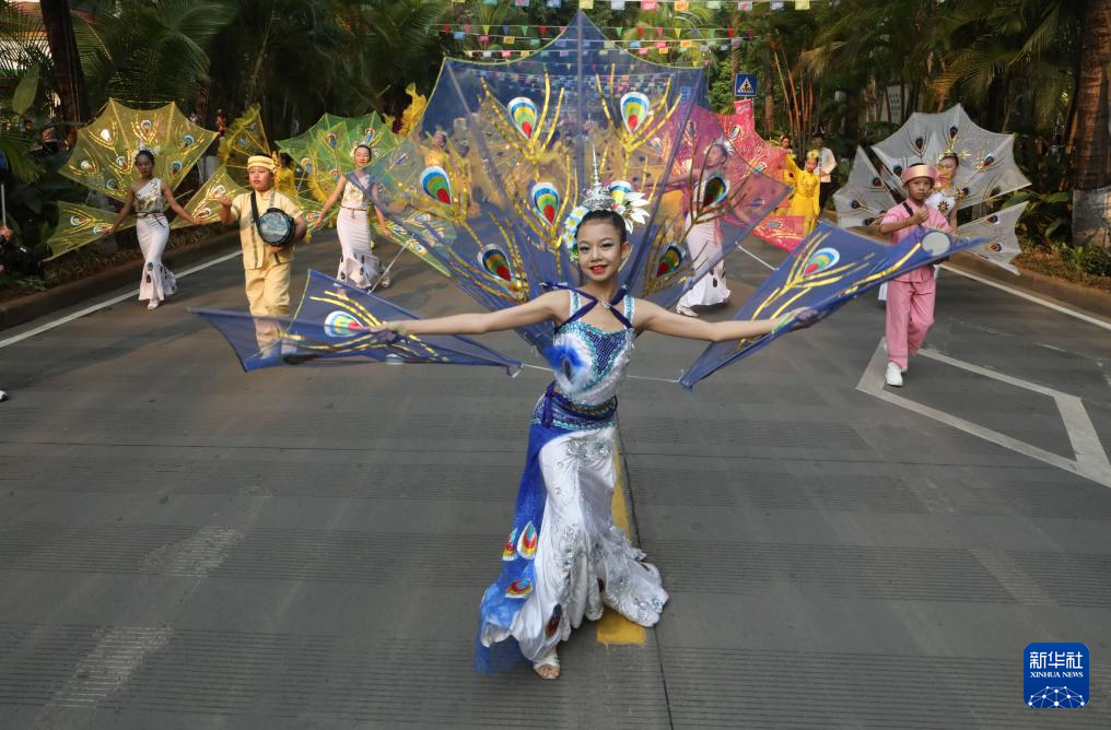 當日,云南省西雙版納傣族自治州在景洪市舉辦潑水節民族民間傳統文化游演活動,各族群眾代表身著節日盛裝載歌載舞,向市民和游客展示了豐富多彩的少數民族傳統文化。
