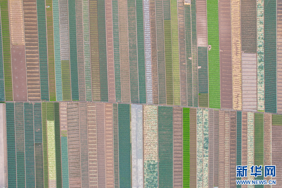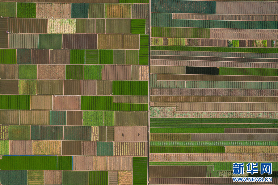 平整規范的土地阡陌縱橫、色彩斑斕(4月6日攝)。新華網發(楊俊鵬 攝)