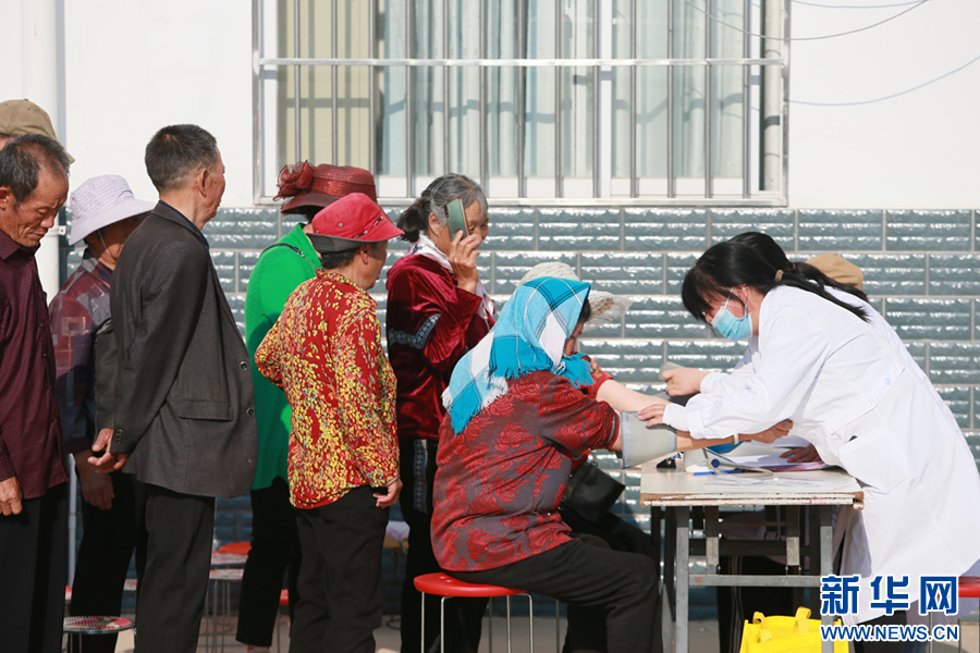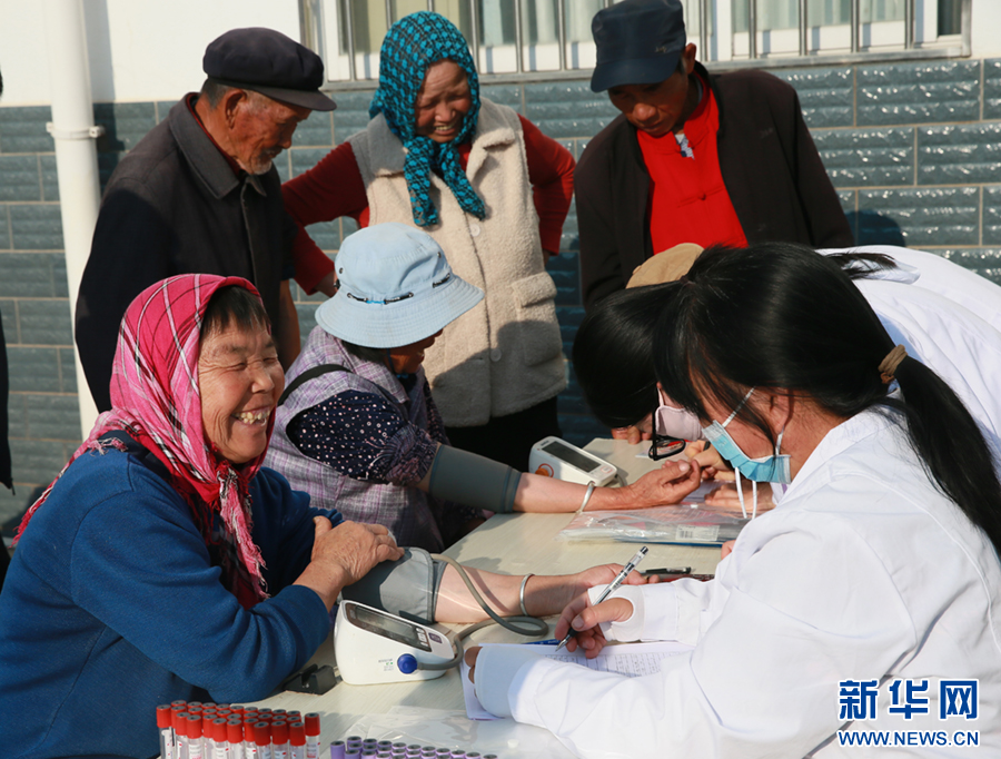 在云南省曲靖市沾益區金龍街道社區衛生服務中心,醫護人員為老年人開展健康評估(4月10日攝)。新華網發(楊俊鵬 攝)