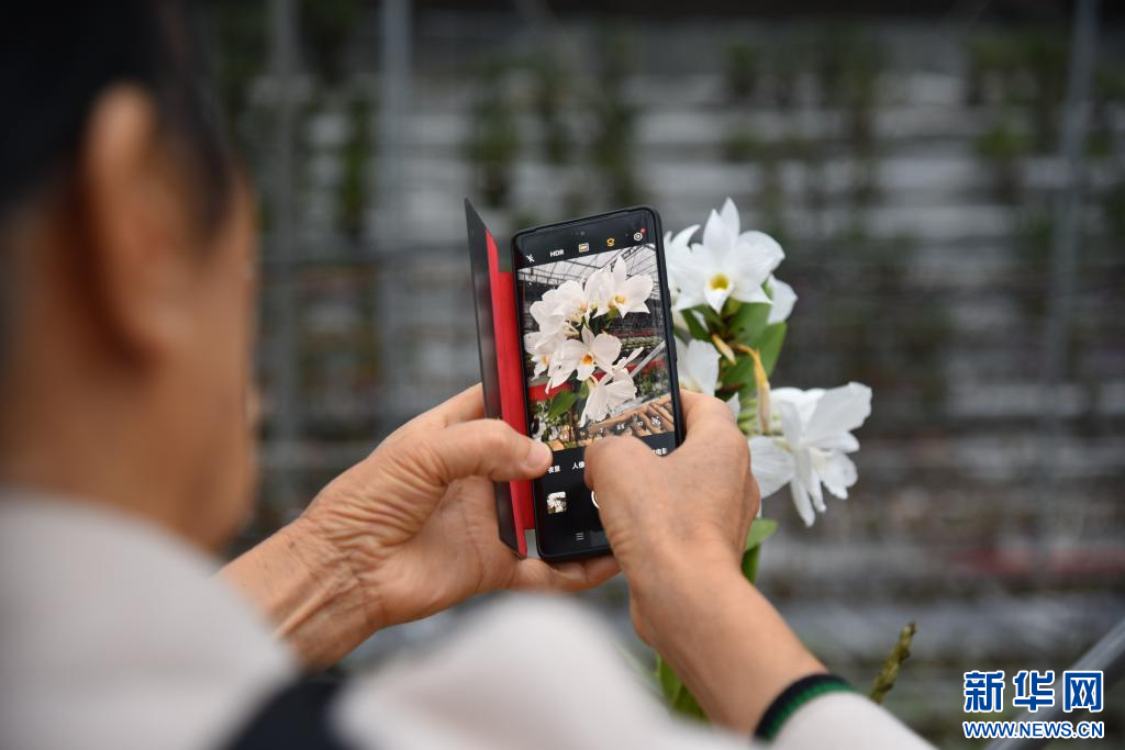 4月19日,首屆中國·龍陵石斛花卉節上受邀嘉賓拍攝石斛花卉展品。新華社記者 董博懷 攝
