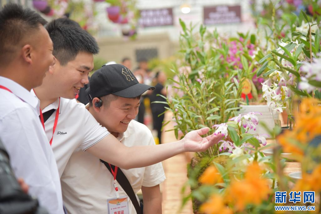 4月19日,首屆中國·龍陵石斛花卉節上受邀嘉賓觀賞石斛花卉展覽。 新華社記者 董博懷 攝
