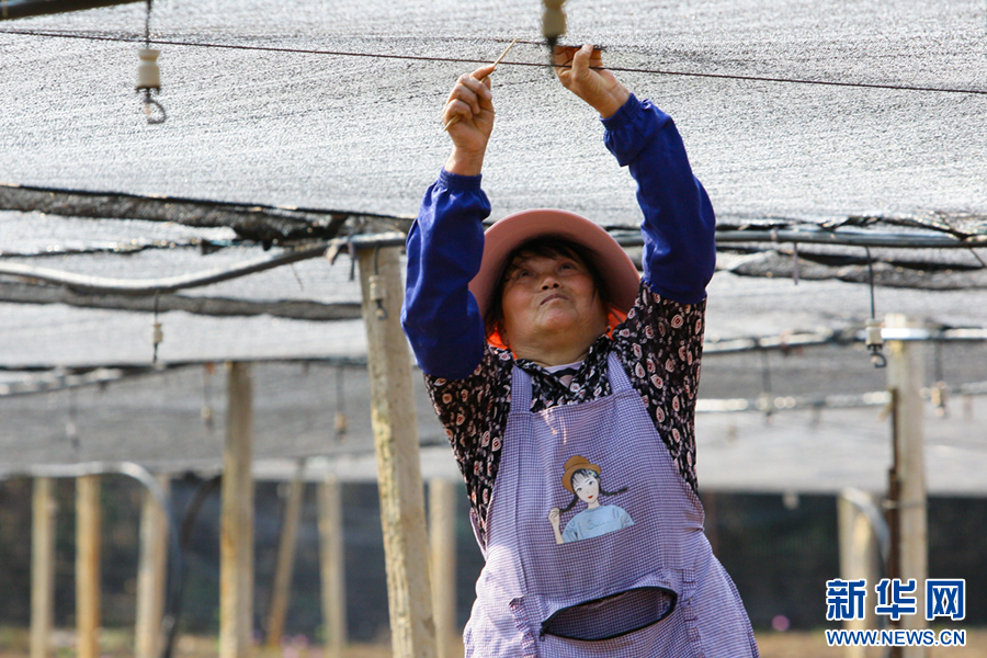 云南省曲靖市沾益區盤江鎮中藥材種植基地,務工人員正在修補遮陽網(4月11日攝)