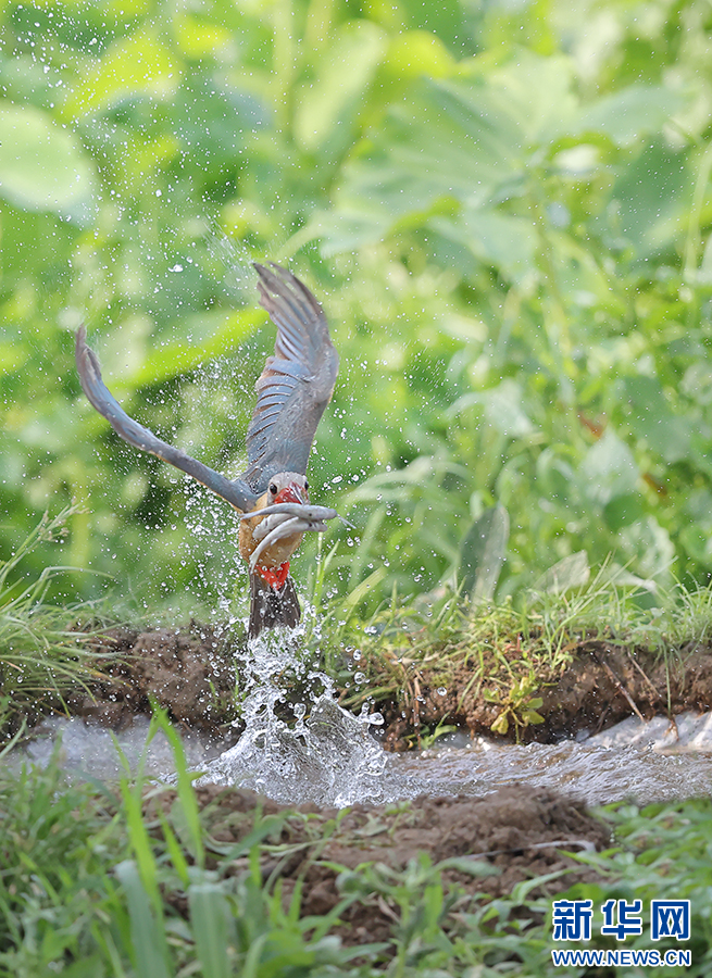 白胸翡翠捕魚出水瞬間(4月15日攝)。新華網發(楊學飛 攝)