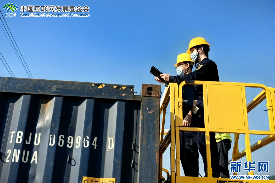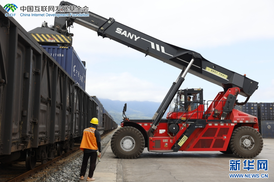 起重車正在將貨物裝車(2023年11月4日攝)。新華網發(劉云 攝)