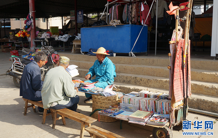 村民圍在書攤前看書(4月7日攝)。新華網 范芳鈺 攝