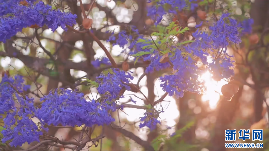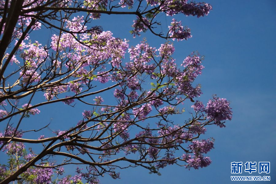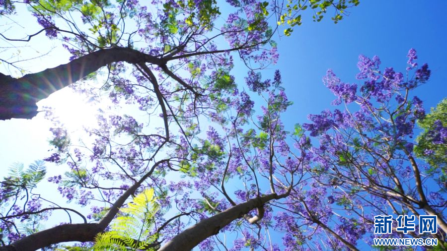 云南省楚雄市藍花楹盛放(4月25日攝)。新華網發(楚雄市融媒體中心供圖)