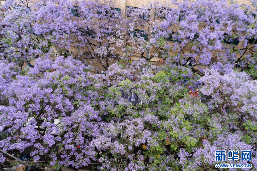 云南省紅河州蒙自市,藍花楹盛開(4月12日攝)。新華網發(羅浩元 攝)