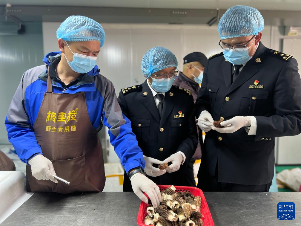 4月22日,海關官員對羊肚菌進行出口前檢驗檢疫。(昆明海關供圖)