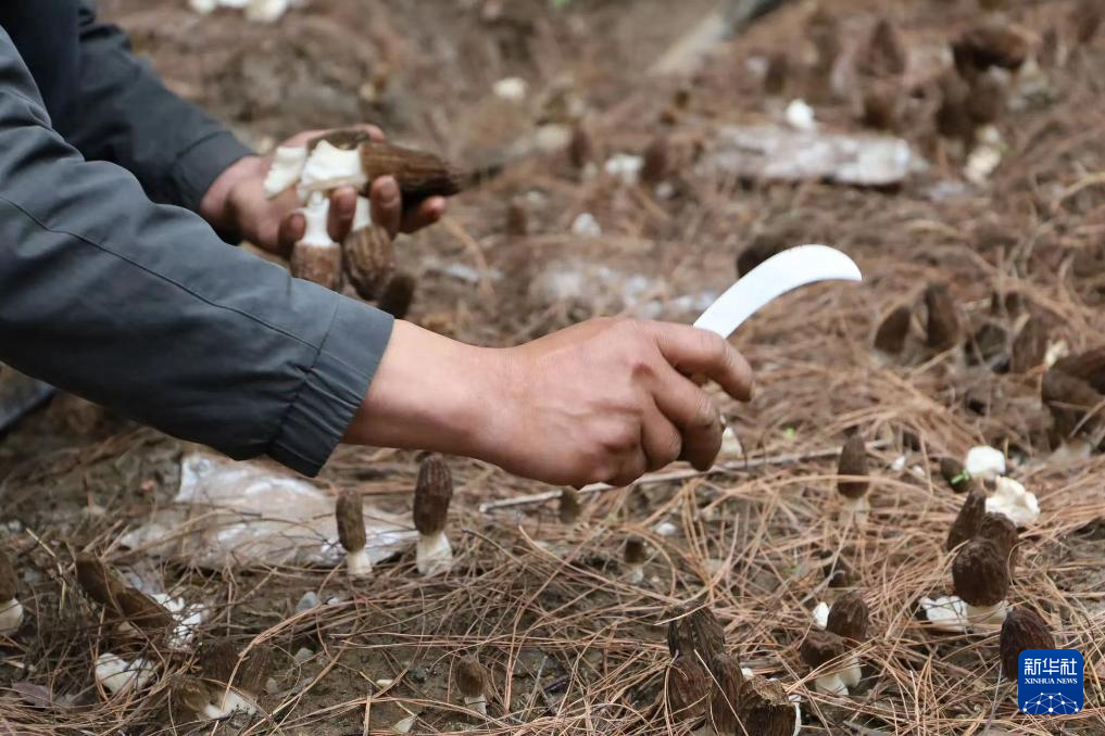 4月15日,工作人員在采摘羊肚菌。(昆明海關供圖)