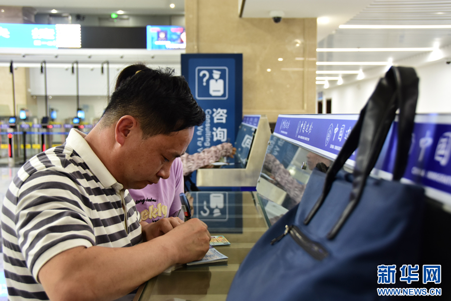 旅客在中越河口口岸南溪河聯檢大樓內填寫入境資料(5月2日攝)。新華網發(薛瑩瑩 攝)