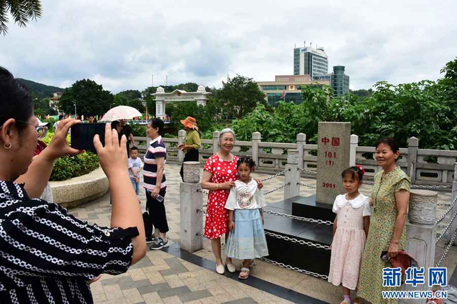 旅客在中越河口口岸拍照留念(5月2日攝)。新華網發(薛瑩瑩 攝)