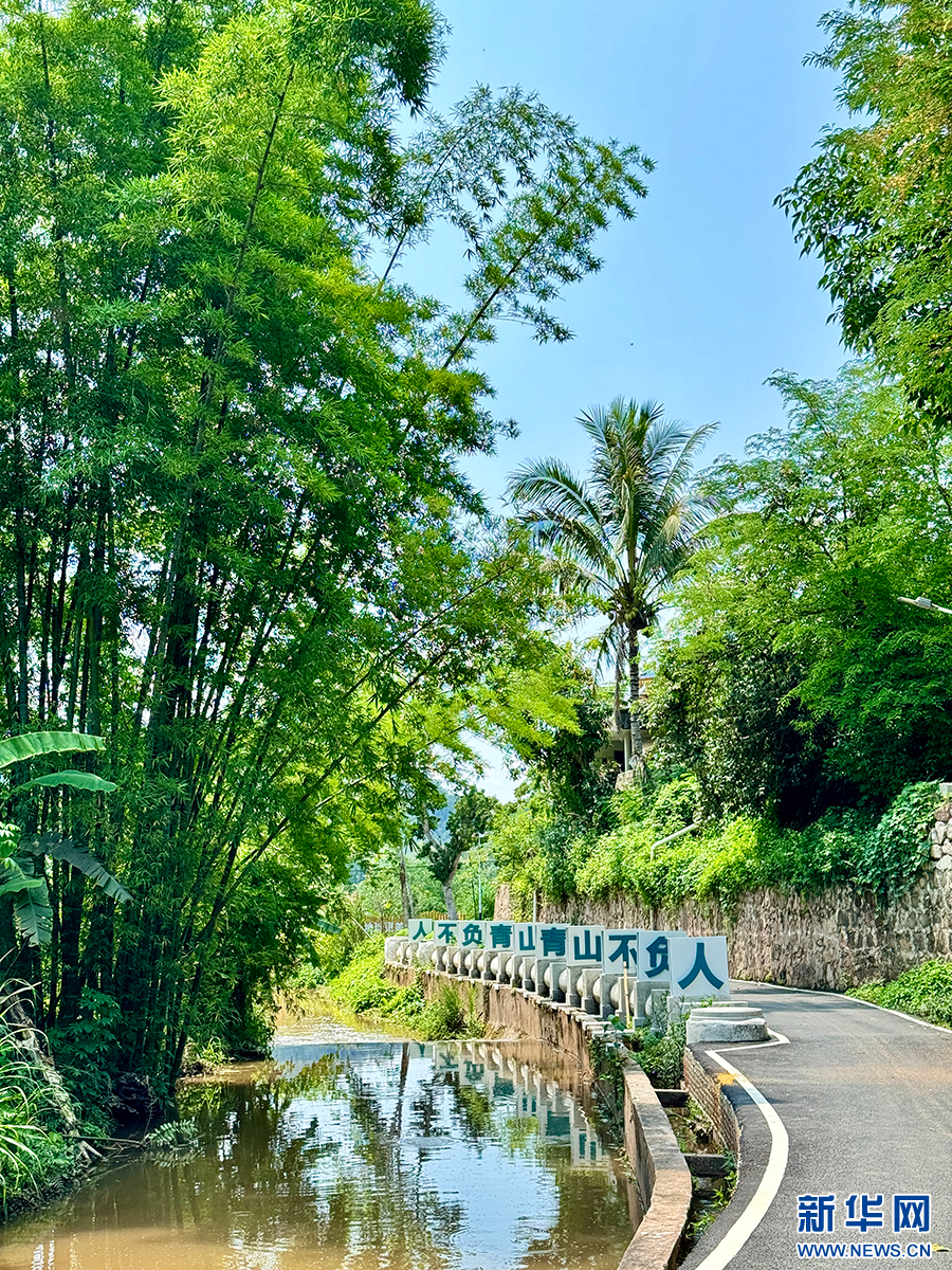 尚岡村內具有傣族特色的打卡墻(5月16日攝)。新華網發(李娜 攝)