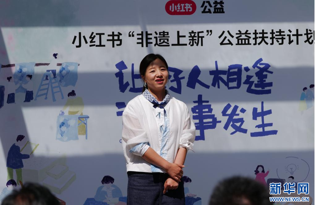 非遺工坊帶頭人與小紅書特邀品牌設計師結對達成合作(5月23日攝)。