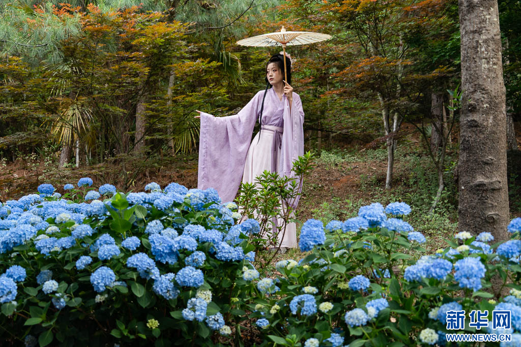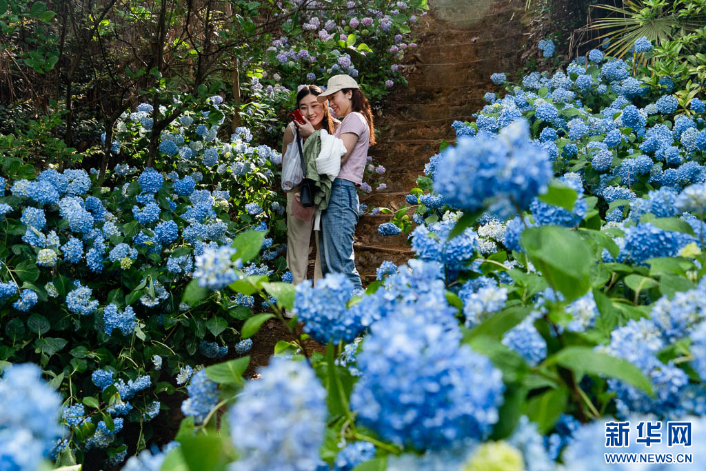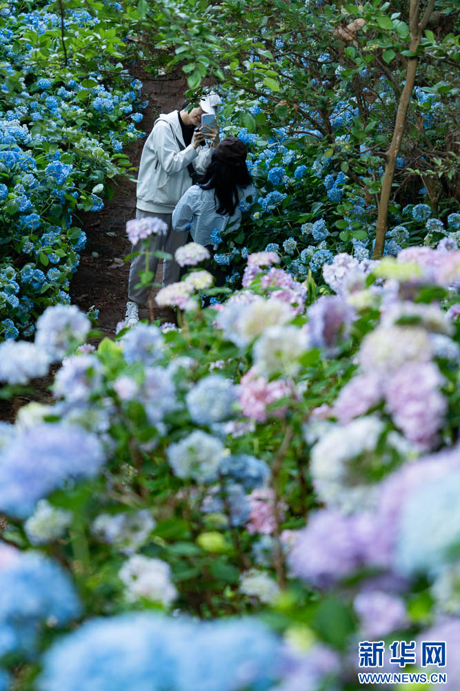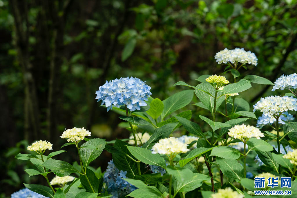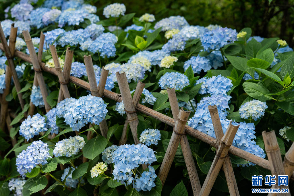 盛放的繡球花(5月12日攝)。新華網發(鄭益 攝)