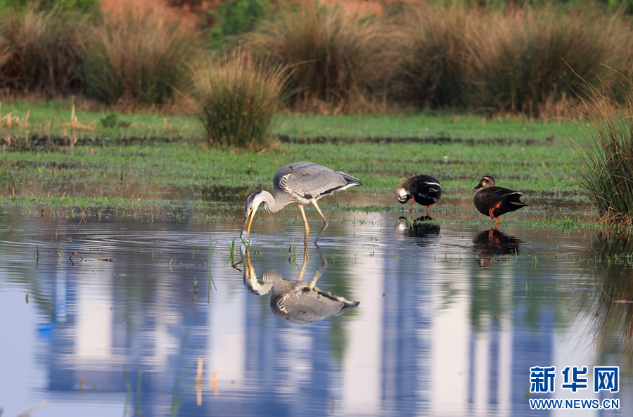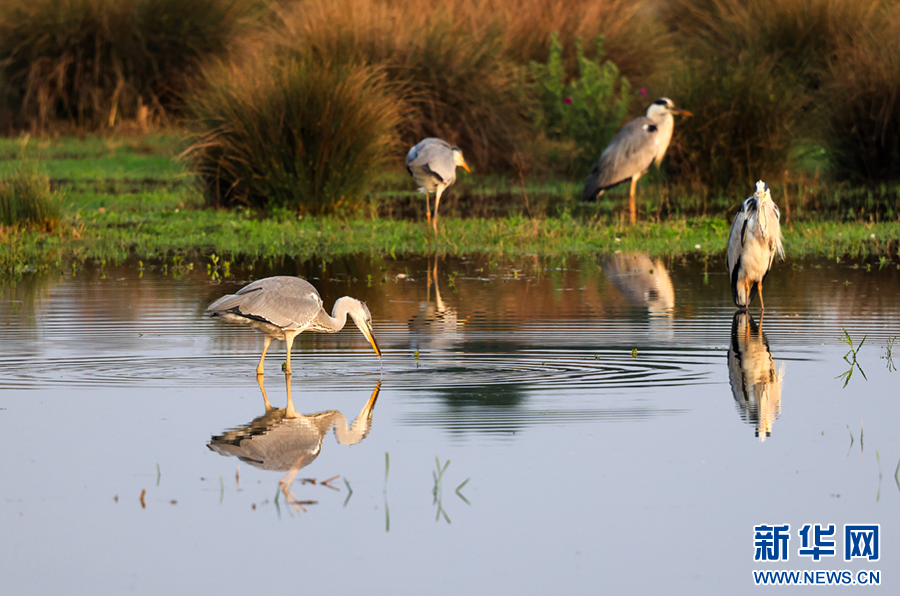 鷺鳥在濕地棲息覓食(5月22日攝)。新華網發(孫文來 攝)