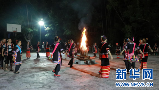圖為小漁村當地村民在廣場上篝火打跳。(江城縣融媒體中心供圖,資料圖片)