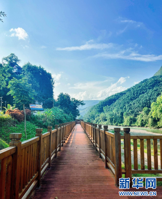 沿著棧道漫步,靜謐安寧。山高水長樹蒼茂,層層堆疊的蔥綠浸染著情感,似在桃花源的夢里。游客在民宿院中支一張小方桌,品普洱茶香,賞青山綠水,任由思緒飄散。