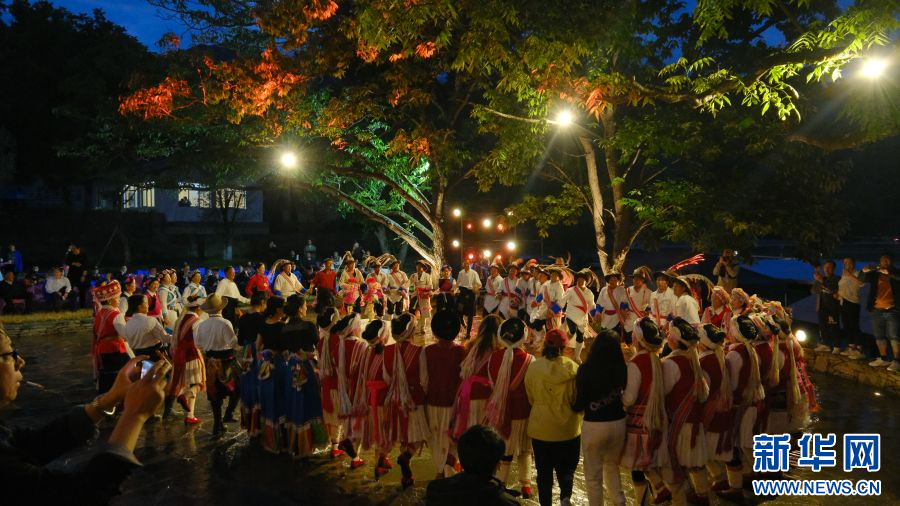 夜晚,當地群眾載歌載舞(5月28日攝)。新華網發(劉小戌 攝)