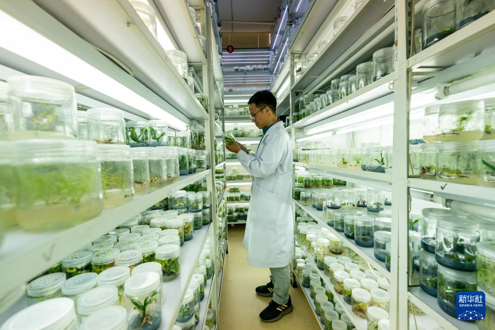 中國西南野生生物種質資源庫工作人員在查看植物離體種質材料(2023年9月27日攝)。新華社記者 陳欣波 攝
