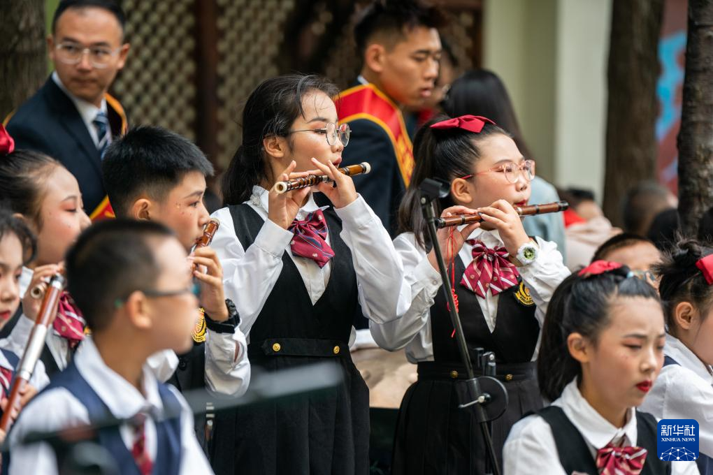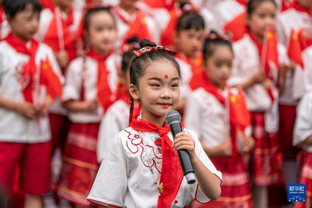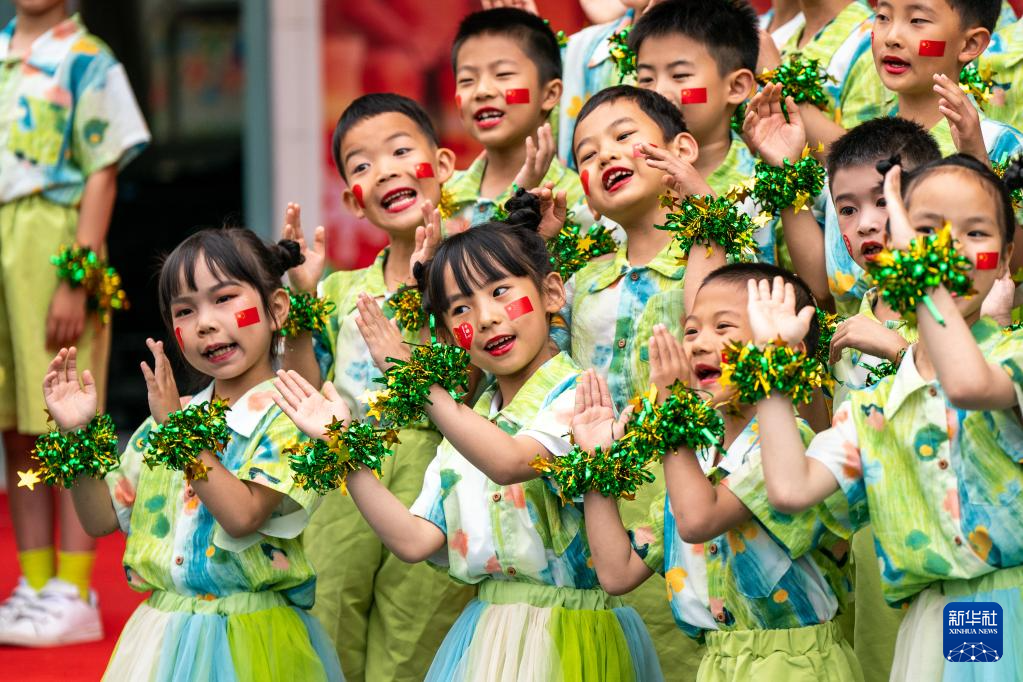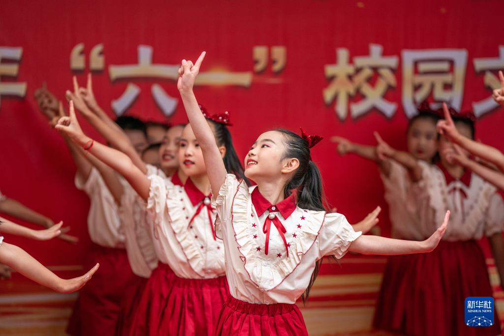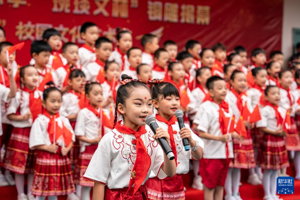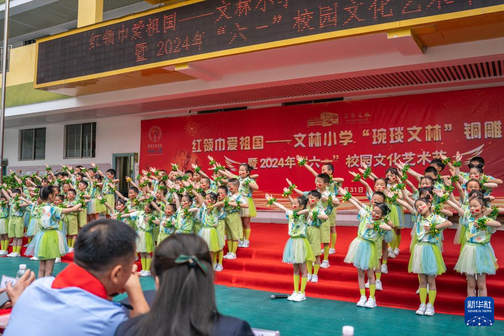 在“六一”國際兒童節來臨之際,昆明市文林小學舉辦“紅領巾愛祖國”——文林小學“琬琰文林”銅雕揭幕暨 2024年“六一”校園文化藝術節,通過豐富多彩的文化活動,讓孩子們在快樂的氛圍中迎接兒童節的到來。(新華社記者胡超 攝)
