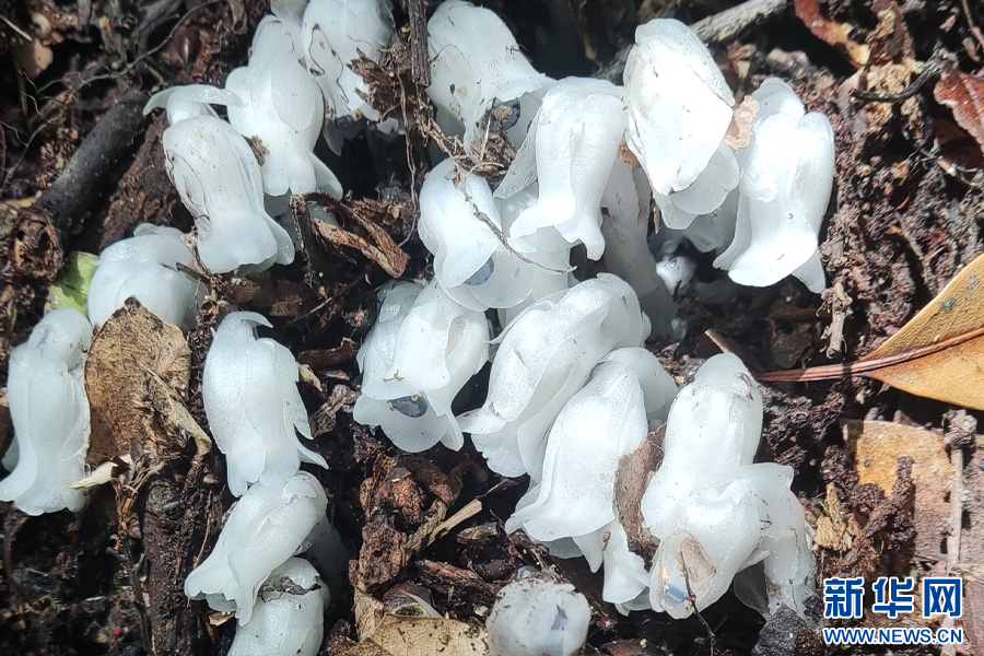 保護區內發現的水晶蘭(5月24日攝)。新華網發(鳳慶縣融媒體中心供圖)