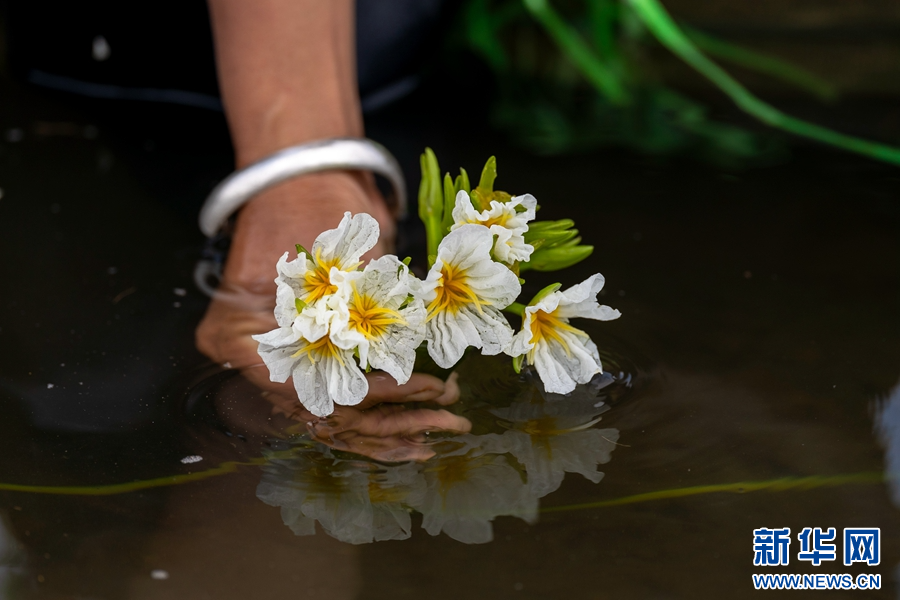 “仙氣飄飄”的海菜花(攝于6月5日)。新華網發(羅新才 攝)