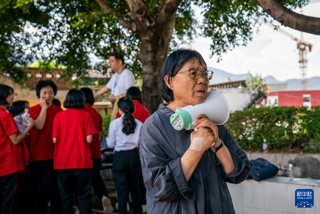 6月7日,張桂梅拿著“小喇叭”叮囑將要奔赴考場的考生帶好考試用品。