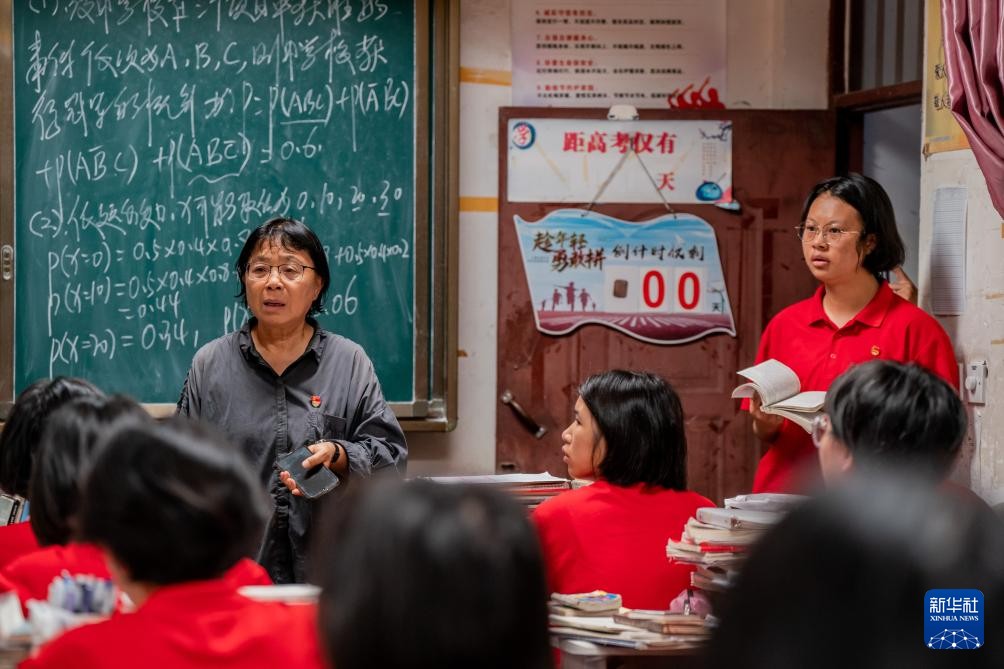 6月7日,張桂梅叮囑將要奔赴考場的考生帶好考試用品。