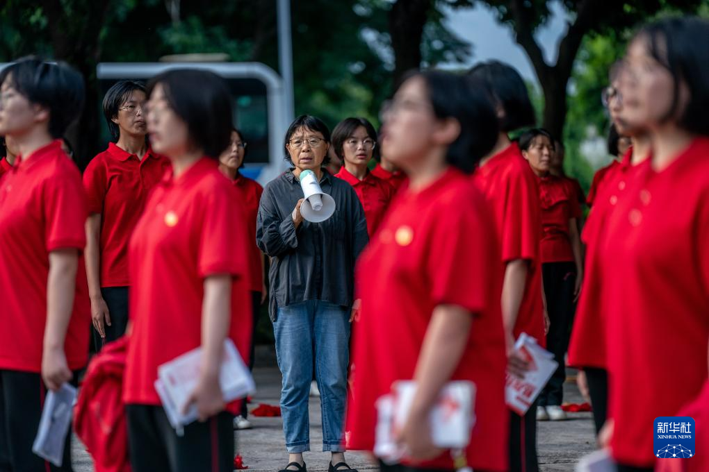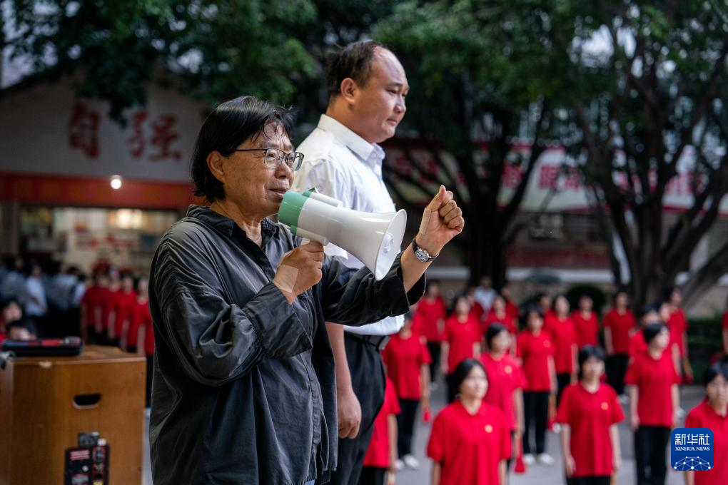 6月7日,張桂梅帶領學生齊唱歌曲《萬疆》,為高三學生送考。