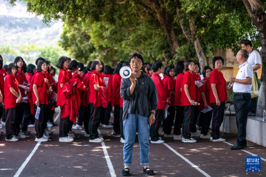 6月7日是2024年高考第一天,云南麗江華坪女高校長張桂梅又是一大早提前來到教學樓,拿著“小喇叭”一遍一遍叮囑將要奔赴考場的高三學生帶好考試用品,并組織低年級學生為參加高考的同學們加油鼓勁。自云南麗江華坪女子高中的學生2011年首次參加高考以來,張桂梅校長已連續送考14年。