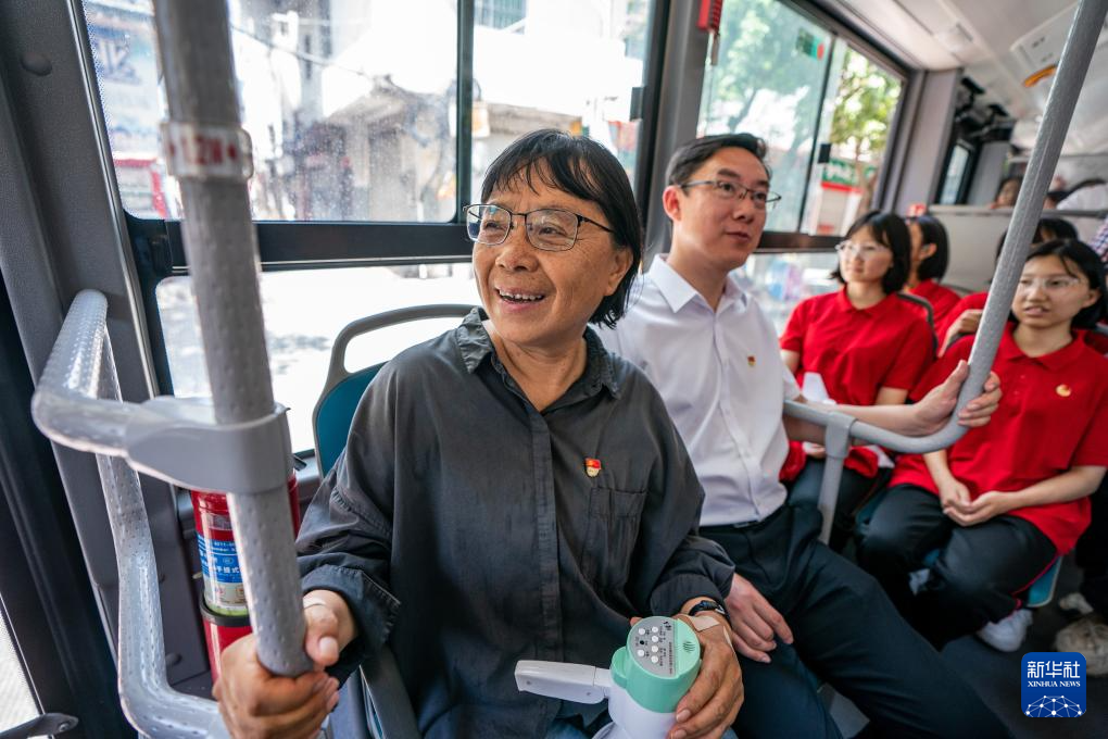 6月7日,張桂梅與學生在返校的車輛上一起唱歌。