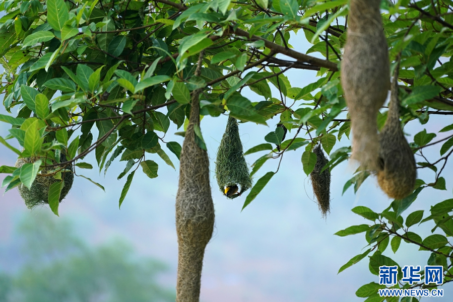 黃胸織布鳥筑巢吸引鳥類愛好者觀鳥(6月6日攝)。新華網發(昌寧縣融媒體中心供圖)