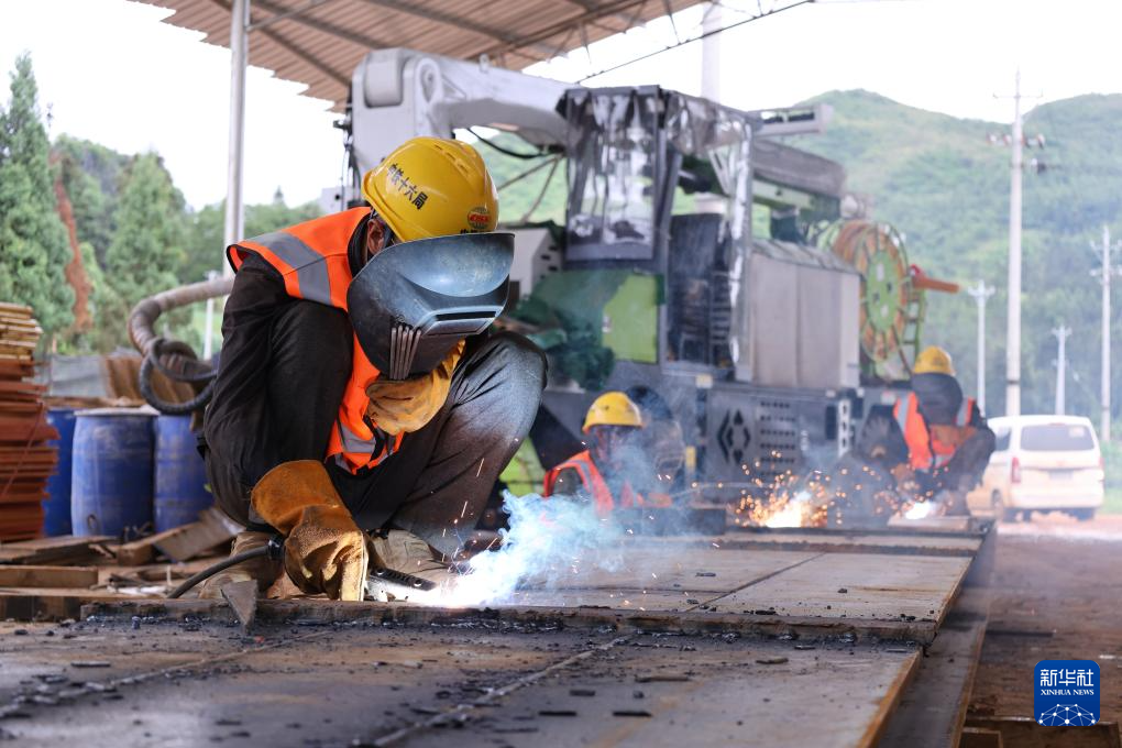 6月12日,工人在云南文山至蒙自鐵路州界隧道斜井施工現場作業。新華社發