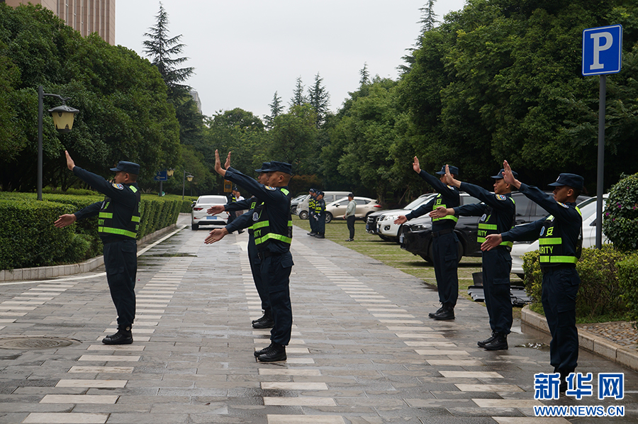 比賽前,參賽人員進行秩序維護演練(攝于6月15日)。