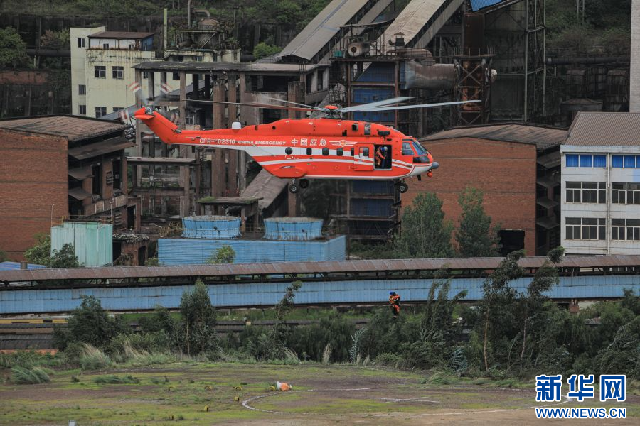 直升機實施救援人員機降(6月18日攝)。新華網發(王維爽 攝)