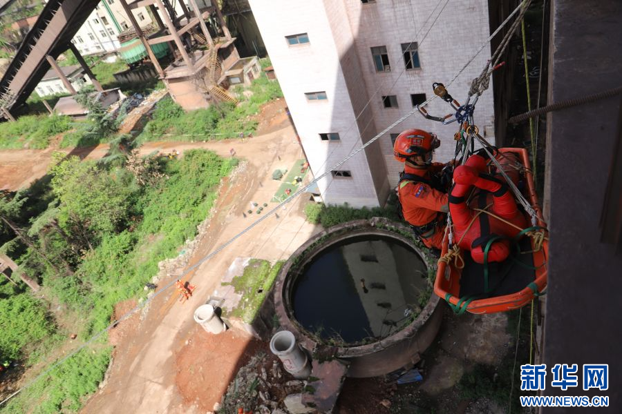 豎井救援訓練(6月18日攝)。新華網發(陳坤 攝)