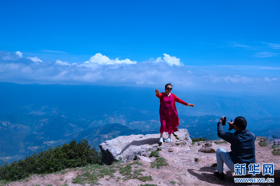 游客在丘北縣舍得草場拍照打卡(6月21日攝)。新華網發(劉起 攝)