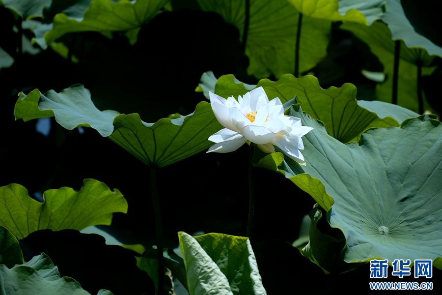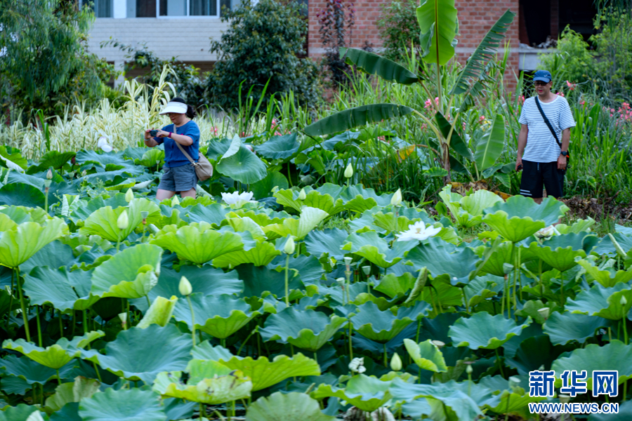 普者黑景區萬畝荷塘里的荷花次第綻放(6月21日攝)。新華網發(劉起 攝)