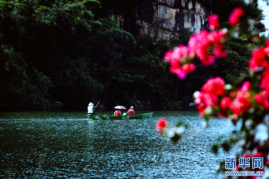 游客在普者黑景區乘船游玩(6月21日攝)。新華網發(劉起 攝)