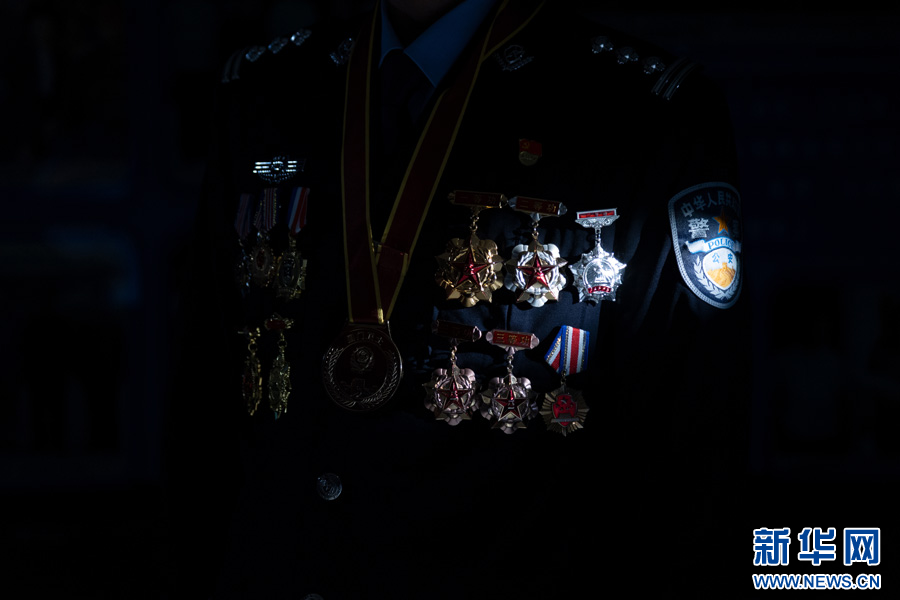 與父母的唯一一張合照中,“某某某”身著警服,胸前掛滿了榮譽勛章。他是父母最大的驕傲,也是虧欠父母最多的人。